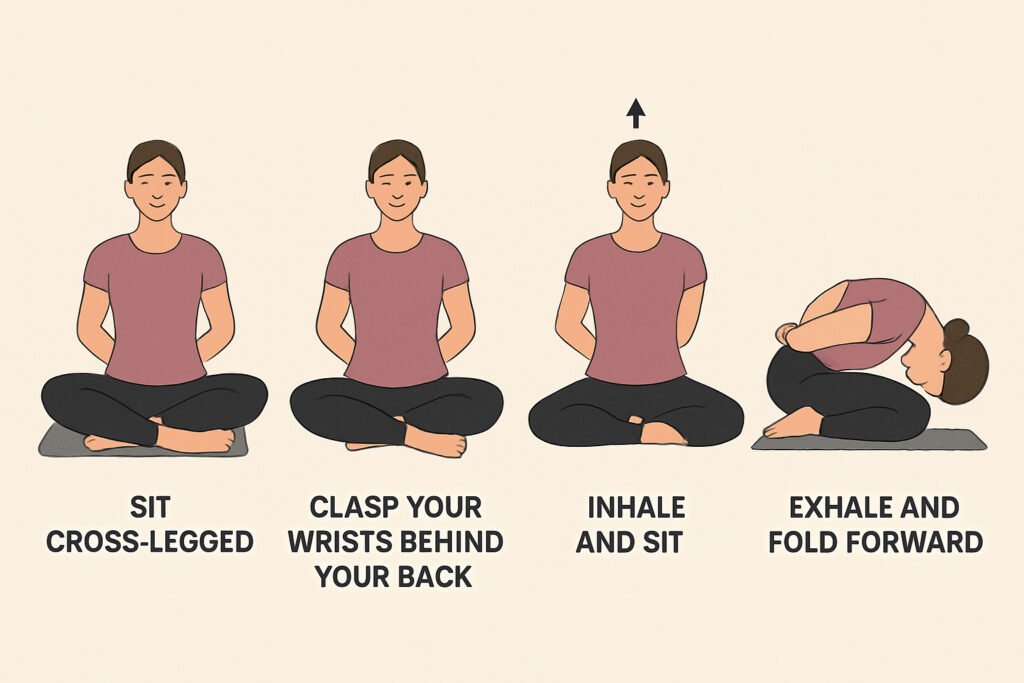 Okay, the fancy answer? Yoga Mudrasana means “psychic union pose.” Sounds mystical, right? Basically, it’s a forward fold you do while sitting cross-legged, with your arms wrapped behind your back. It’s about as comfy as a tight pair of jeans after a buffet—until you ease into it.
